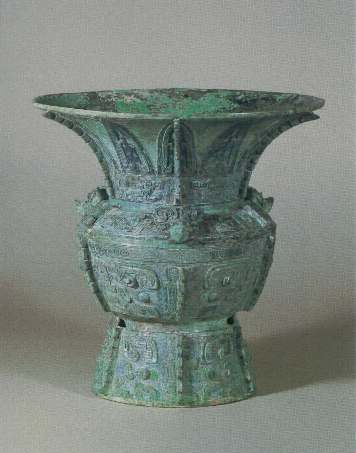 前者と同様の尊であるが、これには口頸部にまで稜飾を施していること、また〓鳳文がみられること、しかも文様全体の表出が前者より立体的であり、地文の雷文の著しいことがあげられる。