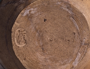 肩衝形茶入を拡大して肩の四方に耳をつけたかのような,独特の形式を有する茶壺である。胴には,山を遠景に配して若松,桜,椿などの図をあらわし,図柄以外の地には黒釉をかけている。漆黒の地に色あざやかな図様がよく映え,吉祥図案としても他にみない構図をとる。また,平らな底の左側中央には「仁清」の大印が捺されている。かつて仁清の茶壺をいくつも蔵していた丸亀藩京極家に伝来した優品である。