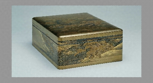 川之辺一朝は江戸に生まれ、12歳の時に幕府御本丸御細工所に入門して蒔絵を修行し、21歳で独立しました。維新前は、徳川将軍家御宮殿の蒔絵を始め、和宮の婚礼調度や大名家の蒔絵に従事。維新後は宮内省御用品に携わり、幸阿弥(こうあみ)派(将軍家御用蒔絵師を務めた蒔絵の流派)を正しく伝えた最後の蒔絵師として明治漆工界で重きをなしました。明治29年に帝室技芸員、明治30年に東京美術学校教授に任ぜられました。