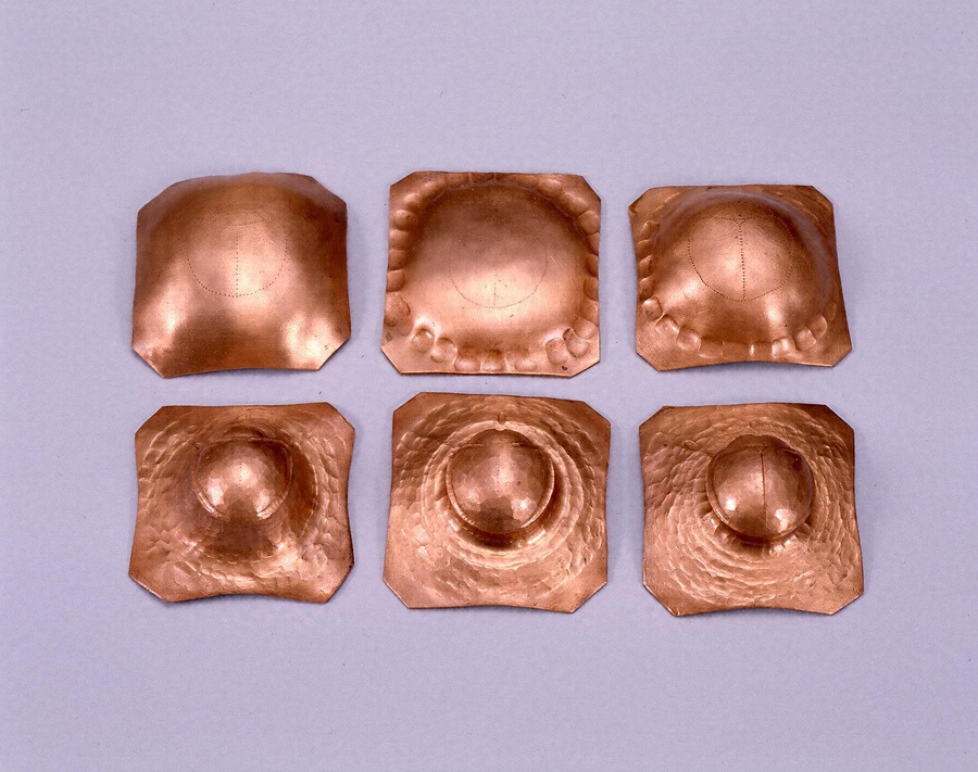 (4)木鏨で裏側から打ち出し、金属板をふくらませて立体感を出す。