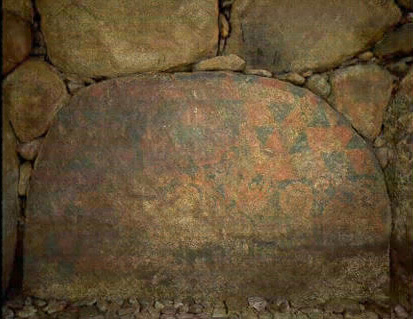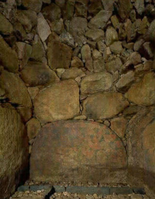 臺地ニ在ル円型古墳ナリ羨道ハロヲ封土ノ南側ニ開キ石槨奥室ノ内面ニハ赤緑及白ノ顔料ヲ用ヒテ文樣ヲ描ケリ裝飾アル古墳トシテ從来知ラレタルモノノ中主要ナルモノノ一ニ属ス