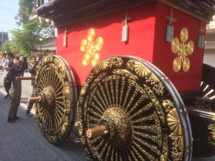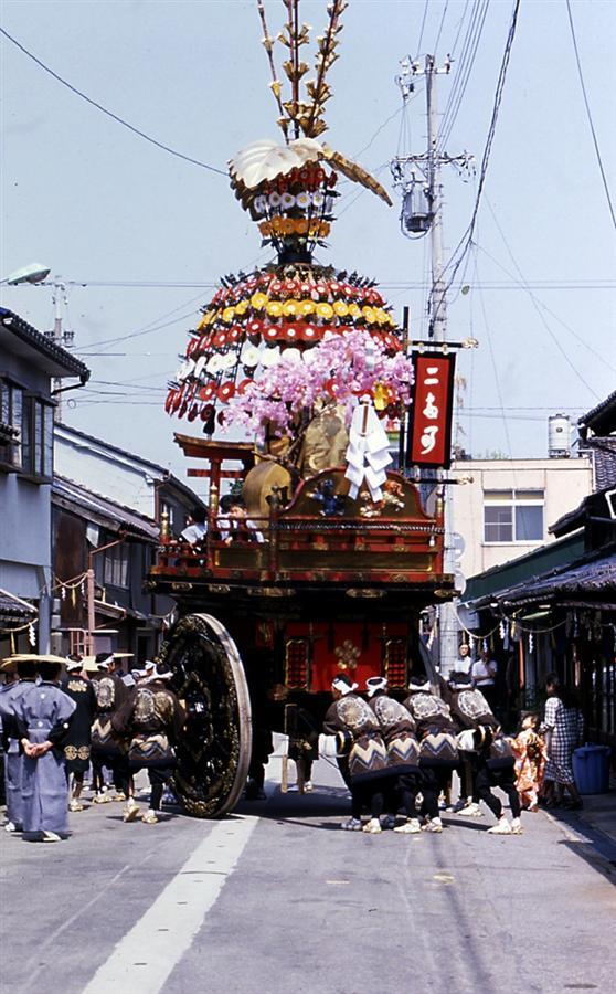 高岡御車山は、加賀藩初代藩主、前田利長が、高岡城築城後、城下の民にわかたれたものと伝えられ、関野神社祭礼(5月1、2日)の際に町内を巡行する。「曳き山」の一種で、特に心柱・花がさ・かごなど神霊を迎えるための諸要素をよく備えている。