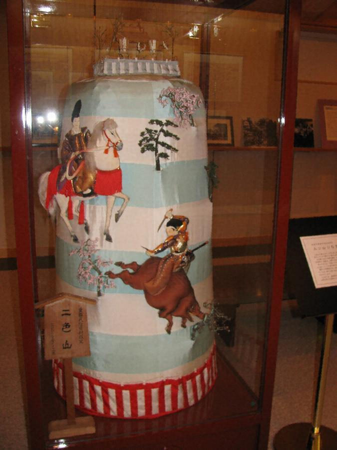 播磨総社の「三ツ山」ひな型は、60年ごとに執行される「一ツ山」行事、20年ごとに執行される「三ツ山」行事にあたって設けられる「置き山」のひな型である。