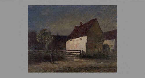 広島県呉市安浦町出身の南薫造(1883-1950)は、東京美術学校を卒業した1907年、イギリスに留学しました。この作品は、渡英の翌年に写生旅行に訪れたオックスフォードシャーのモルトン村を描いたもの。どこか日本を思わせる静かな農村を気に入った南は、自然を愛した画家らしく、細やかな感性で村の情景を伝えています。「此の村の夜は実によい。丁度月は十日ばかり。露ぽい空気が身にしみ込む。白壁に月の光りが当る。壁の窓にはペールな内の光りが透いて見える。静寂である」。