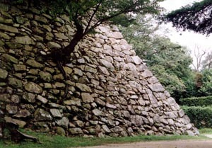 天守の南下に本丸,続いて南東側に南の丸,東の丸・用水池・武者溜まりを,西側には籾倉,西の丸を配し,北側の急斜面には2本の登り石垣と北側斜面を守る小規模な郭群,10数本の大規模な竪堀を設けている。各郭の石垣は、ほんとんどは野面積みであるが,隅石垣などの一部には打ち込みはぎの算木積み技法が用いられている。石材は三熊山産の和泉層群の砂岩及び礫岩である。