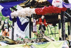 このうち人形浄瑠璃は、宝暦七年(一七五七)から、ほぼ隔年ごとに上演された演目の多くが記録されており、第二次大戦の前後に中断があるものの、山車で行われる三人遣いの人形浄瑠璃という、きわめて珍しいかたちで、『三番叟【さんばそう】』、『傾城阿波【けいせいあわ】の鳴門【なると】』など様々な演目が上演されてきた経過をたどることができる。
