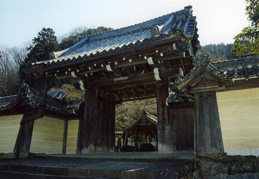 境内北面東寄りの石段上に建ち、左右に築地塀を矩折れに延ばす。一間薬医門、切妻造本瓦葺。女梁両端に大振りの絵様繰形を造り出して男梁を支持し、両妻と冠木中央に板蟇股を置いて棟木を受ける。古刹の境内入口に相応しい、木太く重厚な構えの山門である。