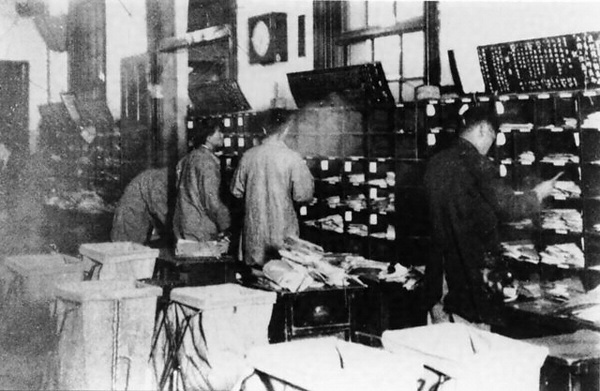 到着破損郵便物補修の実況(東京中央郵便局)