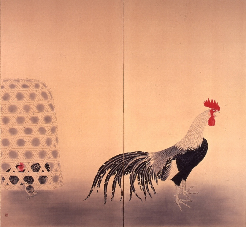 紙本着色鳴鶏 小茂田青樹筆