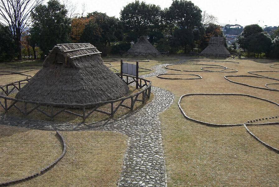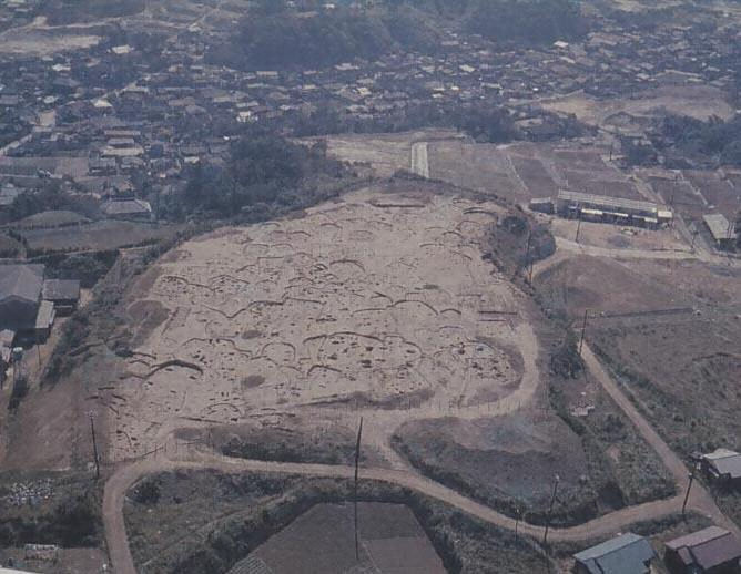 低い台地上に繩文、弥生、古墳各時代にわたる住居跡が複合しており、252個にのぼる。遺物にもすぐれたものがある。