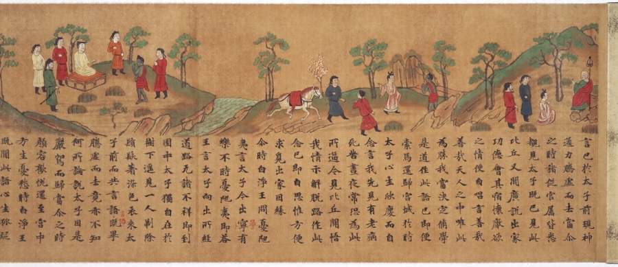 紙本著色絵因果経断簡〈巻第二上/(六十二行)〉