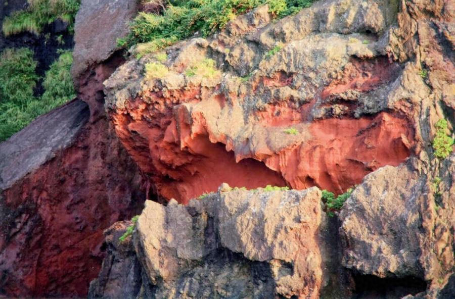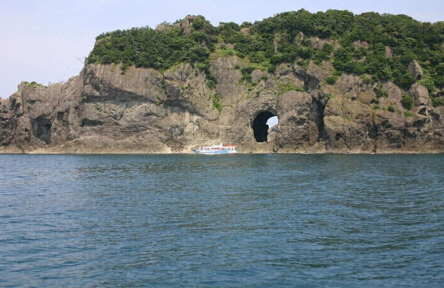 日本海ノ波濤ニ侵蝕セラレタル集塊岩、凝灰岩、花崗岩其他諸種ノ火成岩ヨリ成リ景勝ノ変化ニ富メル海岸ナリ色彩ノ異リタル断崖高ク連リテ其ノ最モ雄大ナルモノヲ屏風岩トナス 數多ノ岩脈ハ帶ノ如クニ涯ヲ貫キテ隨處ニ露ハル洞門洞窟ハ此等ノ岩脈若クハ断層ニ沿フテ生シ舟ヲ容ルルモノ少カラズ 釣鐘洞門十字洞門ハ其ノ主要ナルモノトス 岩礁島嶼ハ点々シテ波間ニ相應シトラキ安山岩ノ柱状節理ヲ成セル大嶋ト朝陽夕暉ヲ腹背ニ迎ヘテ景致ヲ添フル北走巖岬ノ朝日洞門トハ奇勝中ノ尤ナルモノニ属ス