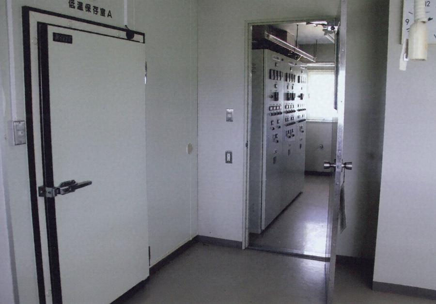 敷地の南寄り、庁舎の東に建つ鉄筋コンクリート造平家建、切妻造、桟瓦葺で、西の冷蔵室と東の保護室を玄関で接続する。小屋組は木造トラスである。冷蔵室は南北両側の廊下の間に二列各五室の冷蔵庫を設け、西端は機械室とする。保護室の内装は貯蔵庫に改修。