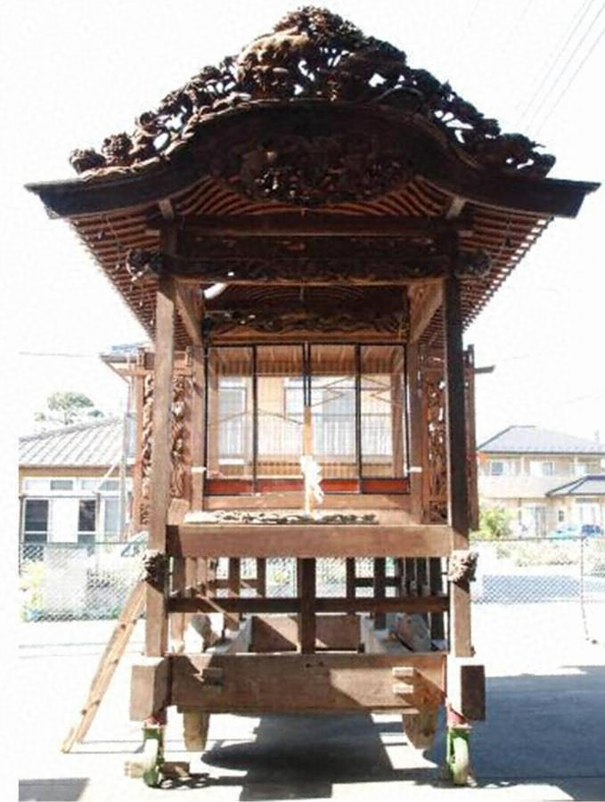 茂呂南町の屋台囃子は、伊勢崎市域をはじめ群馬県から埼玉県北部地域に広く分布するサンテコ(参手鼓)と呼ばれる演目を基本とする、附太鼓3、大胴1、鉦2、笛1で構成される祭り囃子です。第2次世界大戦前には、鼓や三味線も加えていたといいます。茂呂南町では、古くから振付で右手の撥を回しています。屋台囃子は、参手鼓、武州囃子の2曲を伝承しています。茂呂南町では、昭和30年代に屋台曳行の際に屋根の乗った人が落下して怪我をする事故があり、長く屋台曳行と屋台囃子は休止していました。屋台囃子の復活を、昭和末から平成始めにかけて図り、このとき参手鼓については、経験者がいたので伝承復活することができましたが、武州囃子については、南北千木町から伝授を受けました。このとき、参手鼓の指導も受けました。上演は、7月の茂呂地区納涼祭、8月のいせさきまつり、10月の飯福神社秋祭りが挙げられます。かつては、世良田(太田市)の祇園祭に行ったこともあるといいます。茂呂南町では屋台を所有し、伝統的な演奏形態による今後の活用が可能です。