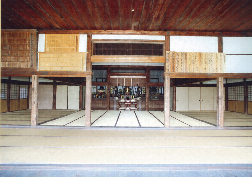 本源寺は、津山市街西部に位置する臨済宗妙心寺派の寺院で、津山城主森家の菩提寺として、慶長12年(1607)に現在の境内が整備された。境内中央に本堂が建ち、東に庫裏が並ぶ。本堂北西が森家の墓所で、霊屋と霊屋表門を配す。本堂は、慶長12年上棟の方丈形式の本堂で、六間取を基本として、北西に御座間、位牌壇を配する。正面は改造されているが、柱や梁組などの主要構造は当初の様子をよく留めている。庫裏は本堂よりやや下り、延宝(1673~1681)頃の建築とみられる。霊屋は、寛永16年(1639)建立で正面の向拝に精緻な地紋彫を施し、内部も優美に飾る。本源寺は、桃山時代の本堂を中心として、庫裏、中門、霊屋など、江戸中期までに整備された建物が残されている。地方における大名家菩提寺として建てられた臨済宗寺院建築の初期の遺構として価値が高い。