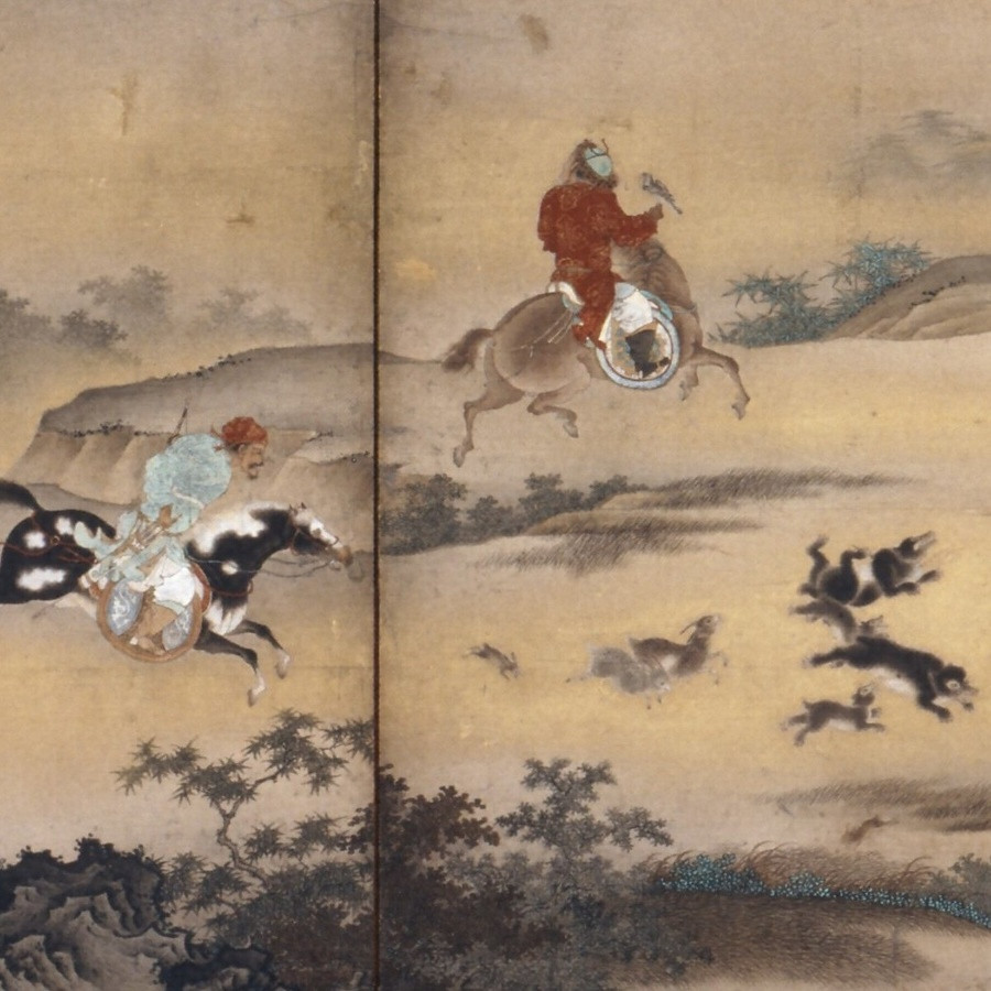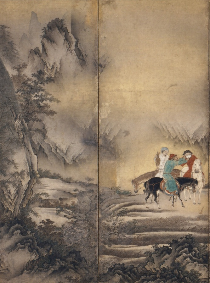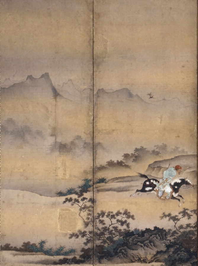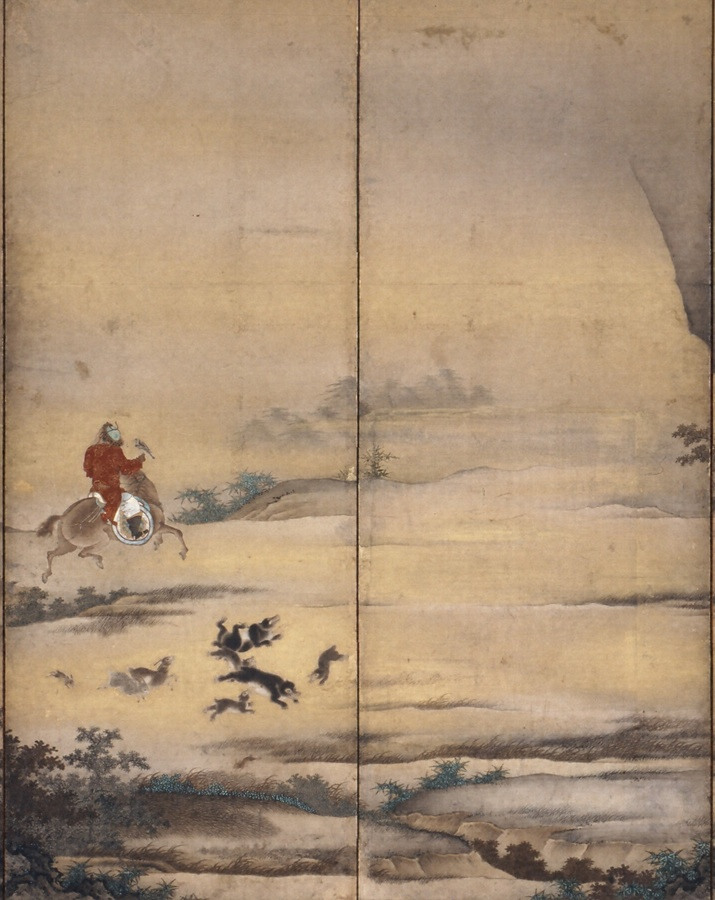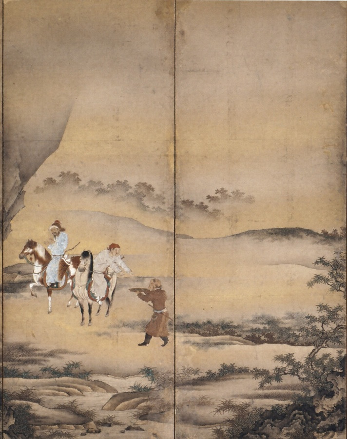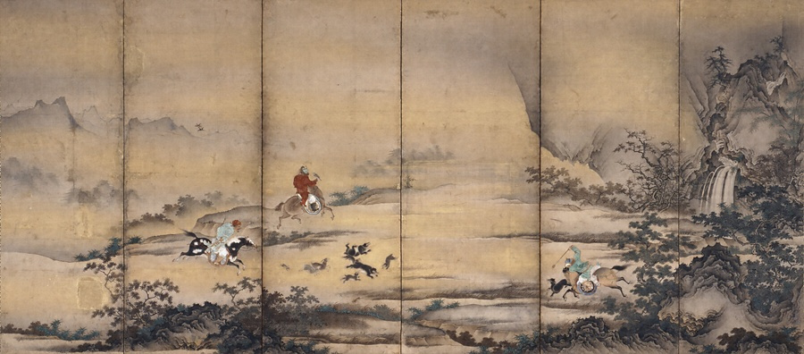 しほんちゃくしょくだったんじんしゅりょうず ろっきょくびょうぶ
