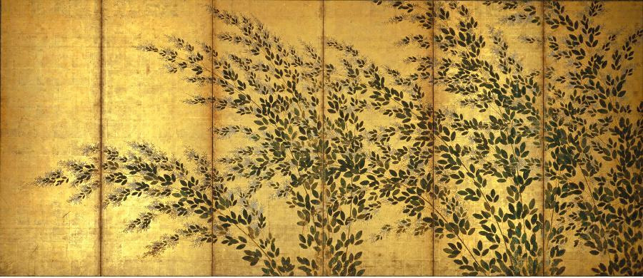 しほんきんじちゃくしょくはぎすすきず はせがわとうはくひつ ろっきょくびょうぶ