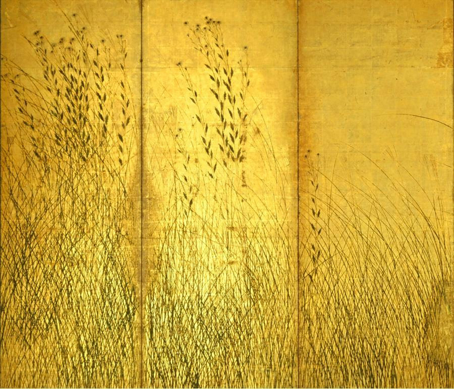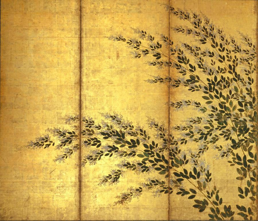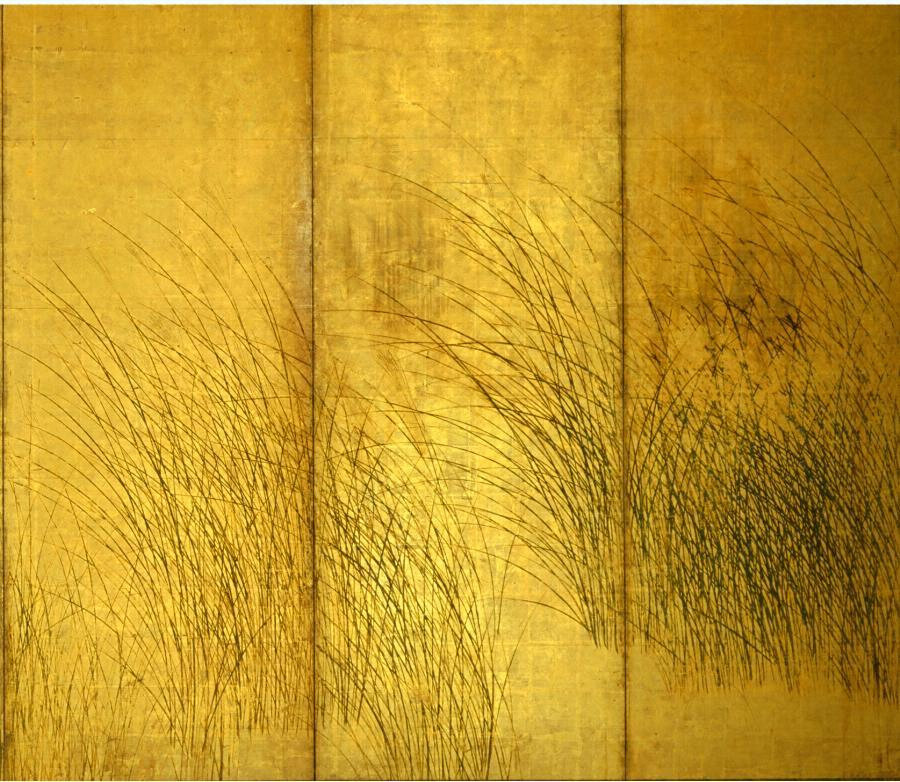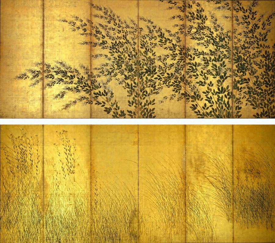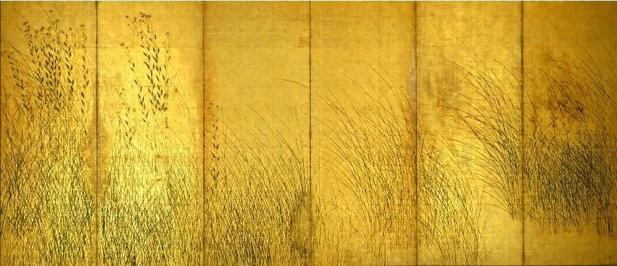 紙本金地著色萩芒図 長谷川等伯筆六曲屏風