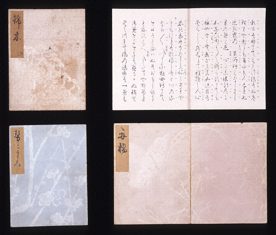 本書は「嵯峨本」と呼ばれる印刷本で、能楽の流行と共に愛好者用に作製された能楽の台本で、表紙は淡い色合いに動植物などの文様を雲母刷りで施し、色変わりの料紙・色糸の綴糸を用い、本文には活字で光悦風の書体をとけ込ませ、まさに総合芸術の本である。平安の美と上代様の筆跡へに憧れを如実に物語っている。
