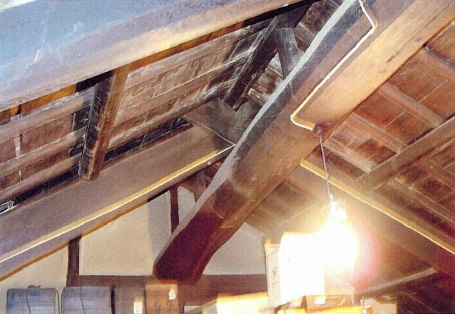 旧街道に西面して建つ。切妻造本瓦葺で、正・背面に下屋庇を付ける。間口11m奥行8.8mの木造つし2階建。上屋は漆喰塗で、出桁まで塗り込め、虫籠窓を開け、下屋には出格子を残す。南寄りにニワ、北側に田の字型に床上を配する。商家の表構えをよく残す。