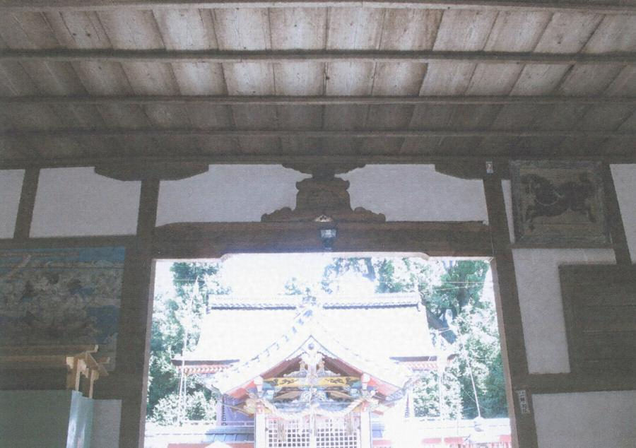 桁行三間梁間二間で中央間を馬道とし、左右に広い板間を設ける。天井が高く、開放的な印象を与える。組物は舟肘木で、中央間の楣上部に蟇股をおき、軒は一軒疎垂木とする。割拝殿形式でありながら、板間の外回り三方を壁にしており、類例の少ない形式である。