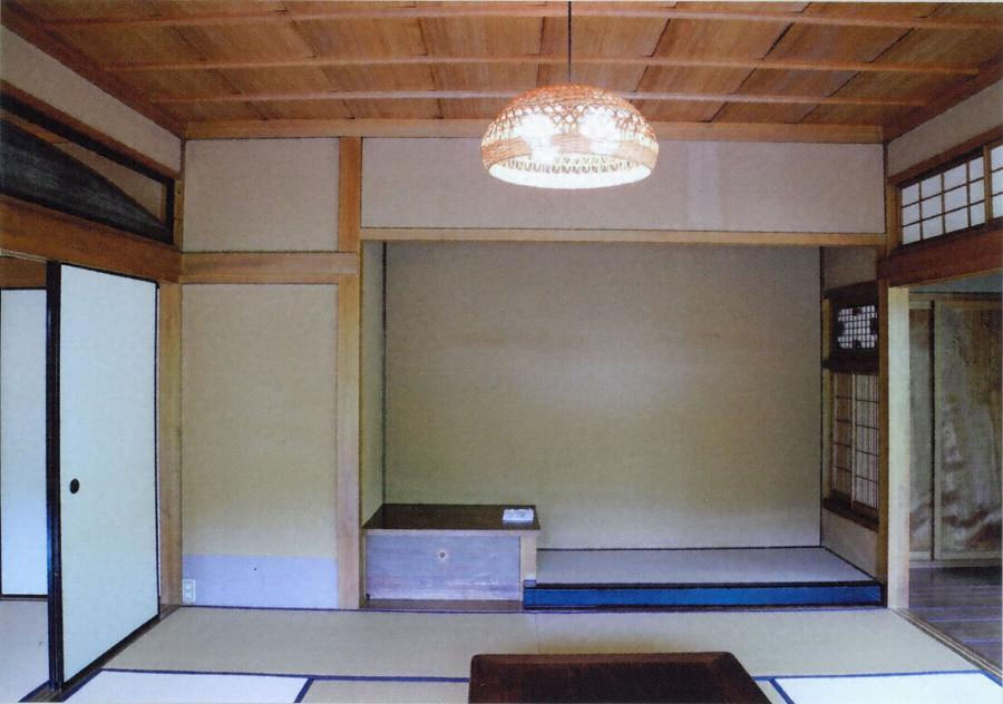 南面する入母屋造桟瓦葺で、正面に渡廊下を介して玄関を構える。西端に土間を張出し、上手前列に八畳三室を並べて縁を廻らせ、北東隅に三畳台目と六畳の茶室を設ける。主室の琵琶棚と書院を取り込んだトコや、座敷境の欄間など、室内意匠も洗練された和風住宅。