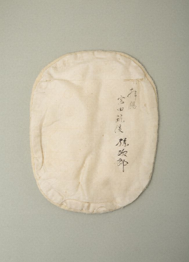 「孫次郎」は年若い美女の面。金剛大夫孫次郎が亡くなった妻のおもかげを写した表情ともいわれ、金剛流で用いることが多い。小面に比べて面長で、くちびるには深みのある紅をひいて心の動きを色濃く表す。毛描きは孫次郎の典型で、額からの二筋に、途中から二筋を加えている。面裏は刀目を残し拭漆。面当てに「拝賜/宮田筑後 孫次郎」との墨書がある。