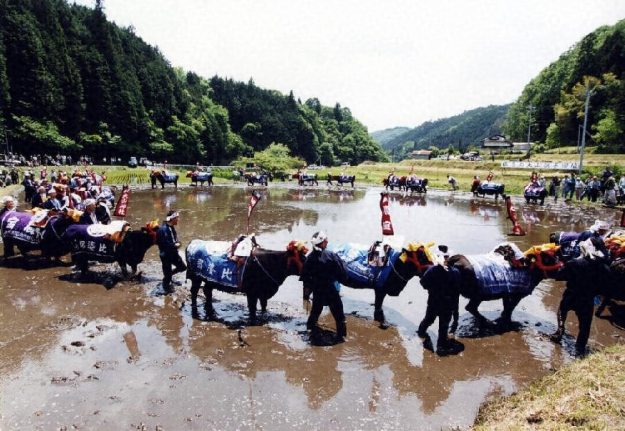 中国地方の山間部に伝承されている囃子田系統の芸能であるが、広島県比婆郡東城町大字塩原ではいわゆる大山供養と大掛りな田植が一体化しているところに特色がある。大山供養は、定期的に毎年行なわれる春秋の大仙祭とは別に、随時、奇特な施主が主催して、不慮の死にあった牛馬の霊を供養し、現在飼育している牛馬の安全と、五穀豊熟、家内安全を祈念する大規模な祭で、その内容は、田植踊、供養行事、しろかき、太鼓田植、お礼納の五行事から成っている。したがってその開催は不定期であるが、ほぼ三年に一回は行なわれる。