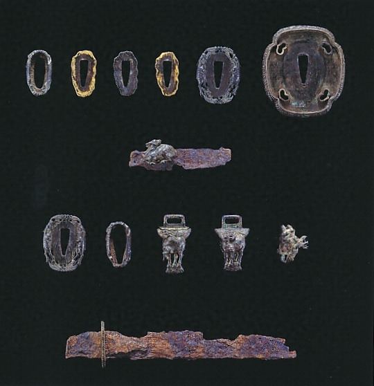大切羽は上下に藤花を透かし、鍍銀、左右に鹿を高彫銀象眼。