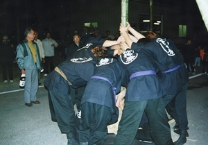 この行事は、須崎市野見地区に伝承されている小正月の行事である。漁業に従事する青年たちが、木遣り唄に合わせて、五色の短冊などで飾られたシオバカリと呼ばれる大きな根付き竹で地区内を地搗きしてまわり、最後に深夜の干潮時にシオバカリを海中に立てて、1年の安全や大漁を祈願する。また、その際、シオバカリの傾き方で1年の豊凶も占う。シオバカリを海中に立てる時刻が深夜の干潮時であることから、ヨシオとも呼ばれる。(※解説は選択当時のものをもとにしています)