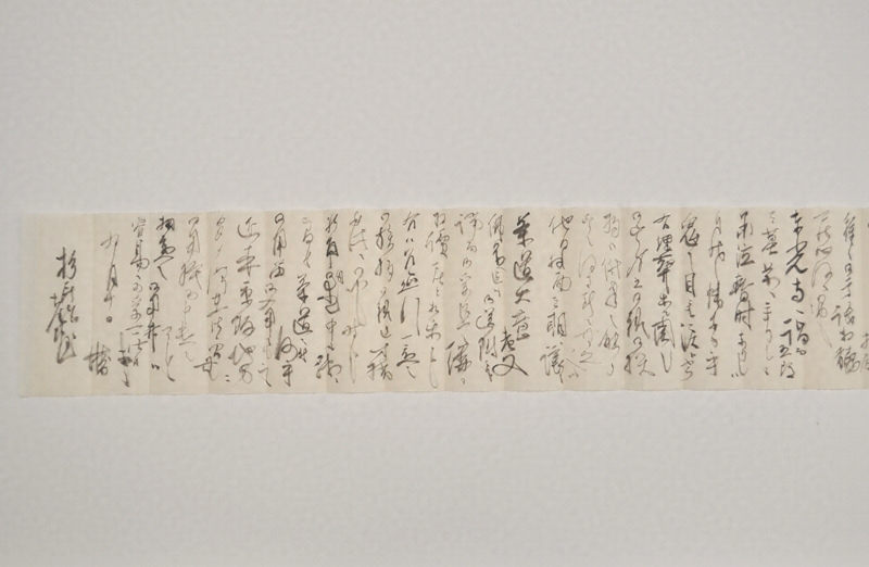井上勝が明治32年(1899)9月、東京から萩の杉民治に送った書簡。勝は、杉民治から送られた手紙を読み、久しぶりに帰省しながらも面会せず帰京したことを叱責されたため、詫びを述べる。その一方、萩では東光寺(毛利家菩提寺)にある実兄冷泉五郎の墓へ参り、しばらく涙を流したとも伝えている。自分を指して「鬼の目にも涙とやら」と表現するなど、喜怒哀楽の激しい人柄がうかがえる。