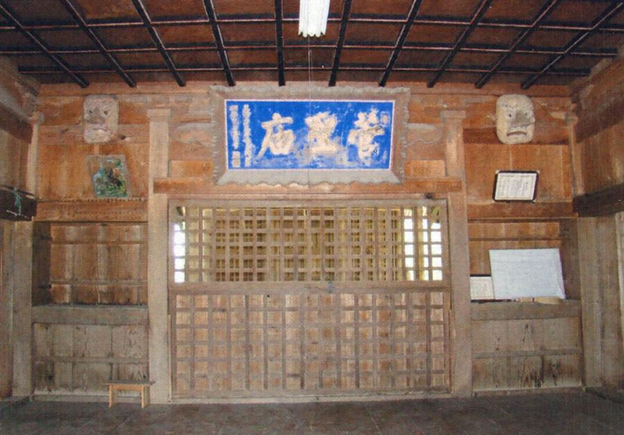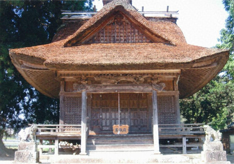 本殿の正面に位置する。桁行三間梁間三間、入母屋造、正面に向拝一間と千鳥破風を付ける。茅葺に杉皮を葺き込む特徴的な仕様とする。正面は桟唐戸と蔀戸、背面は蔀戸で、両脇に壇を設ける。内部は拭板敷で、格天井を張る。穏やかな外観が農村景観に融和する。