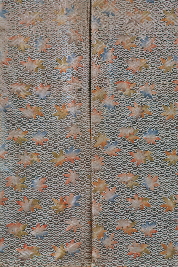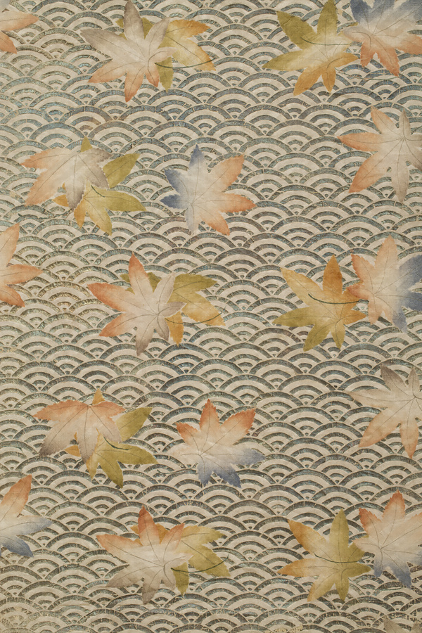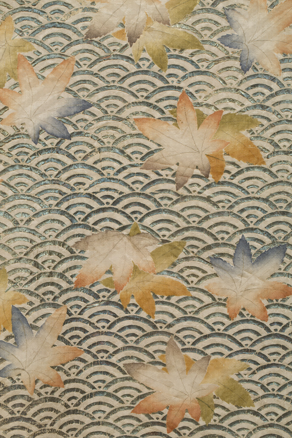 白地青海波紅葉模様摺箔