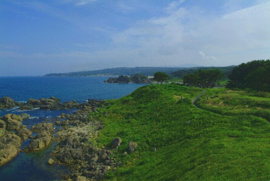 八戸市ノ太平洋ニ面スル東海岸ニ在リ海■ニハ堅キ安山岩及其ノ角礫岩ヨリ成レル大小無數ノ危岩怪岩參差トシテ横ハリ海岸線ノ出入亦頗ル變化ニ富ミテ或ハ怒濤狂瀾ノ激スル釜ノ口、繩掛岩、白島、高岩、辨天崎等ノ岩角島嶼トナリ或ハ日沙ニ磯浪ノ打寄スル種差大須賀深久保等ノ沙濱トナリ火山灰ニ掩ハレタル背面ノ斜面ハ軟草地ニ敷キ鈴蘭、磯百合、■瑰、濱菊等ノ美花點ジ又うみねこ多數渡來シテ大ニ景致ヲ添フ