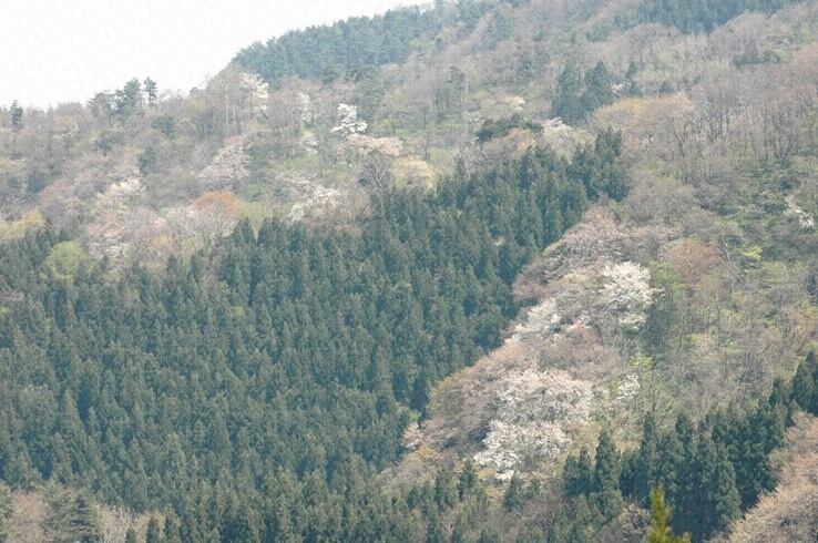 櫛形山脈ノ一部ニアリ海拔約四百メートルノ山頂ヨリ山腹一帶ニ亘リとちのき、けやき、ぶな、みづなら等ニ混ジテ多數ノ山櫻發生シ花容花色ノ変異ニ富ミ老樹大木少カラズ 概シテ紅山櫻ハ山ノ上部ニ白山櫻ハ中復ニ多シ其他丁字櫻モ亦山中ニ群落ヲ成ス種々ノ櫻ノ發生セル樹林トシテ學術上有益ノモノナリ