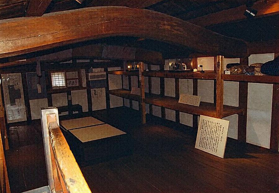 店蔵の西に庭を介して建つ。土蔵造二階建、置屋根形式の切妻造妻入鉄板葺、桁行八・四メートル梁間四・八メートル。主屋に向う東妻一階に出入口、二階に開口を穿ち、両開扉を吊る。外壁は漆喰仕上げで、腰を海鼠壁、鉢巻などを黒漆喰仕上げで引き締める。