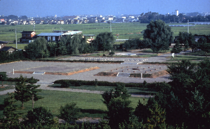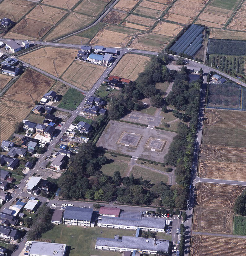 水田地下ニ金堂阯ト認ムル石敷並ニ塔阯アリ 金堂阯ノ石敷ハ東西約四十四尺南北約三十五尺周圍ニ平安時代ノ様式ヲ備フル多數ノ遺瓦ヲ發見セリ 其ノ東約六十尺ノ處ニ塔阯アリ水田下ニ土壇ノ基底部及側柱礎ノ栗石群ヲ存ス 嘗テ其ノ中央ニ存セレ塔心礎ハ長徑約七尺三寸短徑約五尺六寸アリ今村社大兄八幡神社境内ニ運バレ手洗盤ノ用ニ供セラル 塔阯附近ニモ多數ノ遺瓦アリ 此ノ如キ廢寺阯ハ北陸地方稀有ノモノナリ