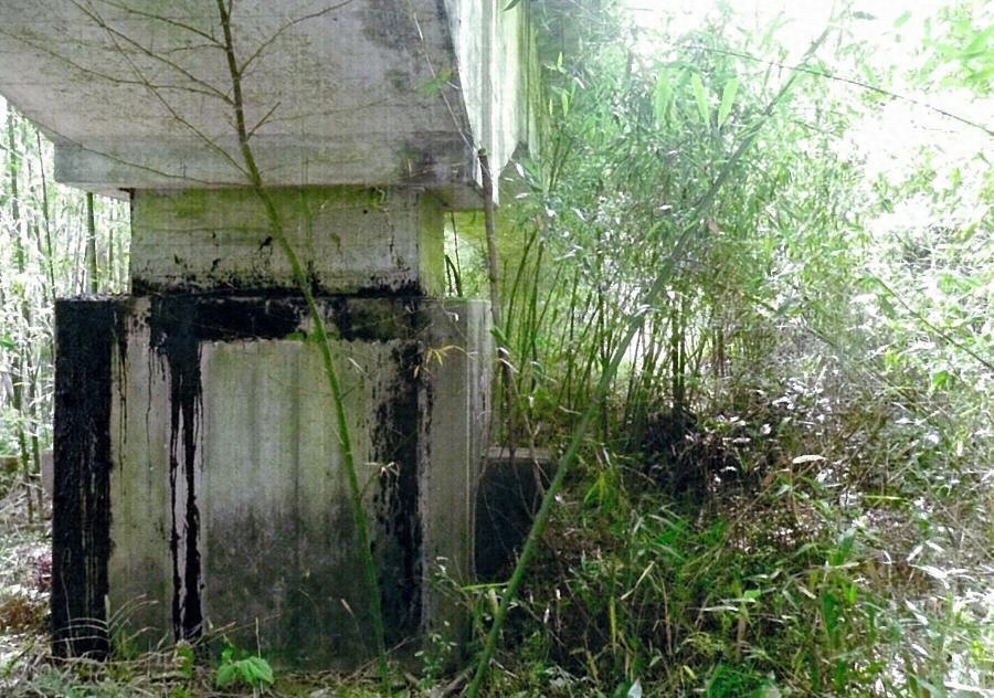 金指駅から一五〇〇メートル東、橋長三九メートルのRC造三径間連続桁橋。中央の支間が二三メートルを測る長径間RC造桁を用い、桁と金指側橋脚を固定、他方の橋脚と桁を可動支承とする特殊な構造になる。鉄道省が直轄工事で実施した意欲的な試みを伝える。