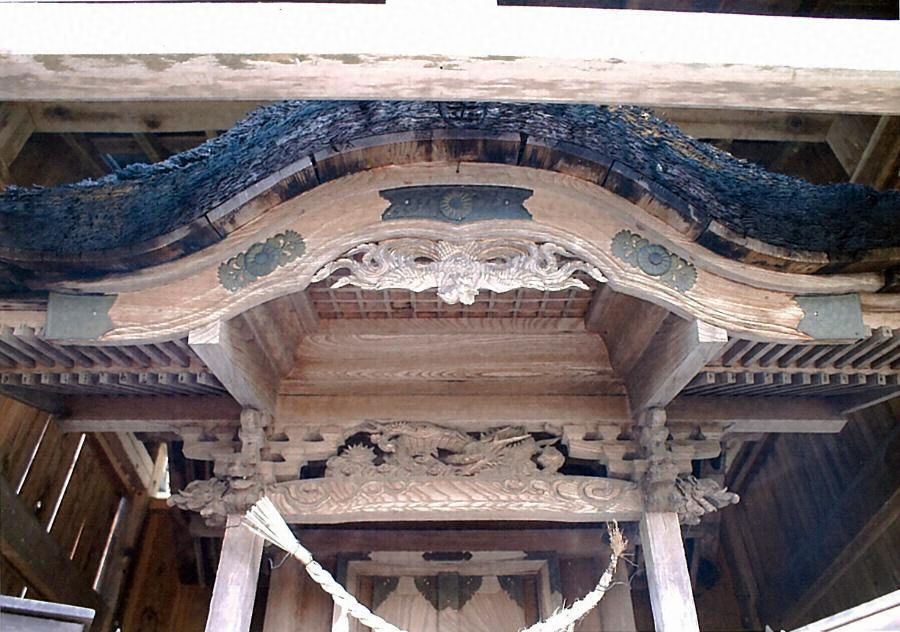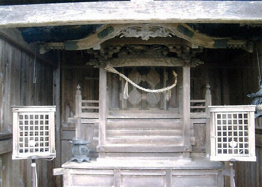 主屋の南面に広がる庭園の西南に位置する。浜縁付の一間社流造で、正面に千鳥破風と軒唐破風を付ける。檜皮葺。身舎は出組、向拝は三斗を二段に組み、中備に龍を飾る。正面は二軒繁垂木で、唐破風には組入天井を張る。良材を用いた丁寧な造りで、彫物も秀逸。