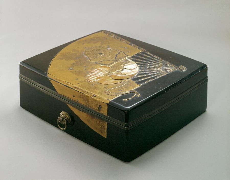 扇面鳥兜螺鈿蒔絵料紙箱