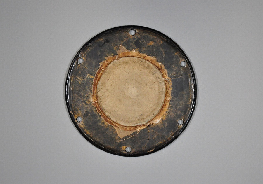 表革として使用されていたもので、古革で十六の上塗りがはがれ、腰敷にも割れがある。