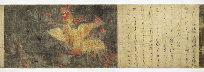 当館の地獄草紙は明治年間には東京・大聖院の所蔵であり、のち神奈川・原家を経て国有になる。東京国立博物館所蔵の旧岡山・安住院本地獄草紙一巻とならんで著名な作品である。詞書き六段、絵七段からなり、隋の闍那崛多訳『起世経』巻二所説の八大地獄の周辺の十六小地獄を表したものである。現在の場面は、第一段糞屎泥地獄、第二段凾量地獄、第三段鉄鎧地獄、第四段鶏地獄、第五段黒雲沙地獄、第六段膿血地獄、第七段孤狼地獄となっている。なお絵第七段は『起世経』の孤狼地獄ではなく、『大楼炭経』に説かれる狼野干泥梨とする説がある。