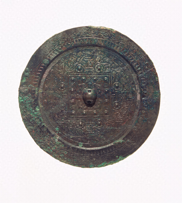 流雲文縁方格規矩鏡(奈良県天神山古墳出土)