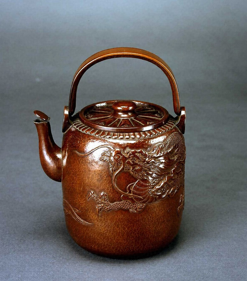 唐銅鎚起龍文水指