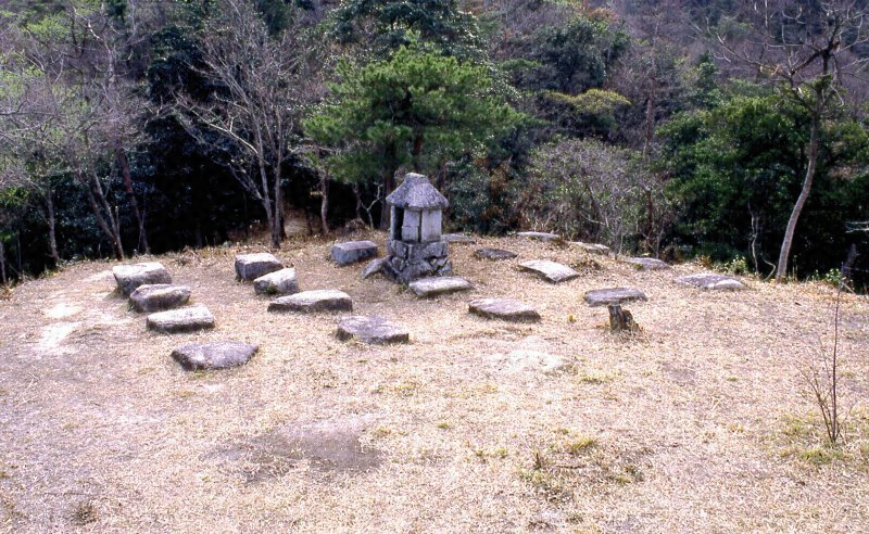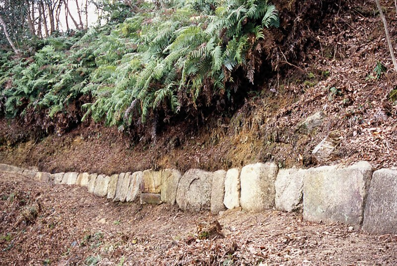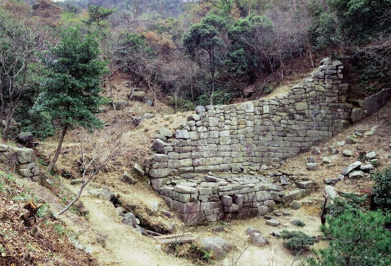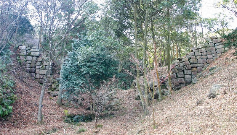 缶ヶ辻と称せられる標高246.9mの山梁の西部にあり、南西竝に北斜面溪谷の東西両側の屋根に近い部分に切石状の列石及びその痕跡を存し、その延長約4200mと推せられる。北斜面東方・中央及び西方の溪谷に所謂東ノ門、中ノ門及び西ノ門の石壁あり、殊に中ノ門の石壁は所謂御所ヶ谷川に跨りて存し、延長30余m高さ約6mを有し、切石を以て壁状に構築せられ、その基部に精巧な水門口あり、この種の示例中最も優秀なものである。なお中ノ門の西方の小丘陵上に景行神社の石祠並に礎石の配列あり、西ノ門附近に馬立場と名づける石積がある。わが国上代の遺跡として価値が深い。