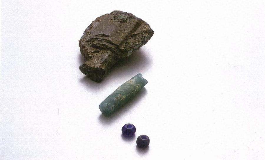ガラス製品(小玉2点、管玉1点)、青銅製品(細形銅剣1点)