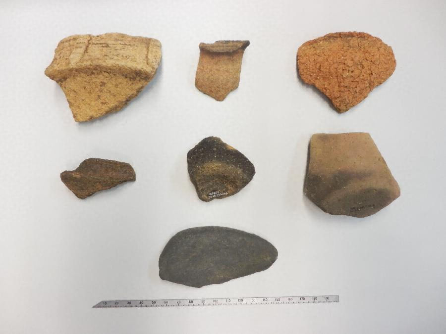 附、弥生土器(壷、甕、鉢、高杯)、石器(砥石)