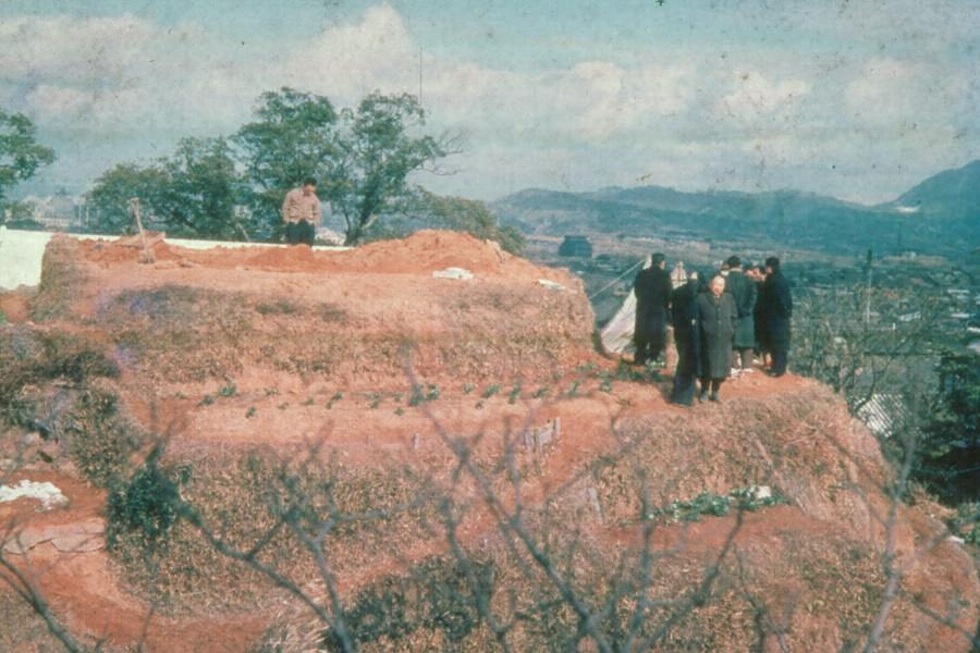S51-12-016[[潜塚古墳]くぐりづかこふん]16.txt: この古墳は、筑後と肥後との境、大牟田市の東方、小独立丘陵上にある円墳である。本古墳は、昭和34年、大牟田市教育委員会が調査を実施している。墳丘は、直径30メートル、高さ6.5メートルの円墳であるが、本来の高さは約8メートルと復原される。墳丘の下部3分の1は地山を整形したものである。