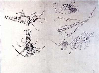 賀来飛霞動物写生図 伊勢海老図