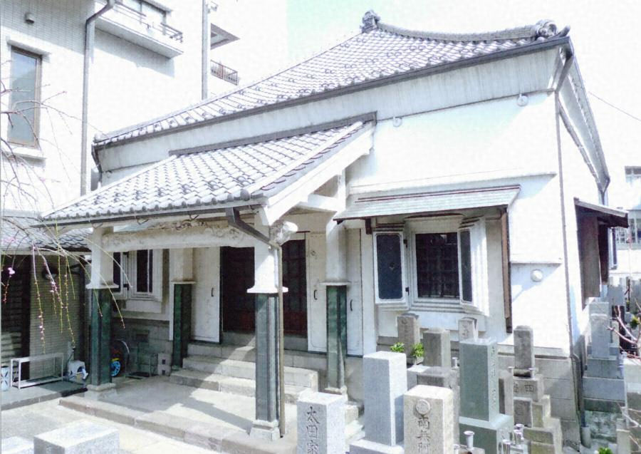 敷地中ほどに西面して建つ。桁行9.9m梁間15mの土蔵造、寄棟造妻入桟瓦葺で、正面向拝一間、側背面を葺き降ろす。内部は外陣と内陣、余間等から構成される浄土真宗平面になる。向拝や軒まわりまでを塗り込めた土蔵造仏堂の代表的遺構のひとつである。